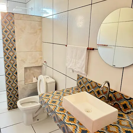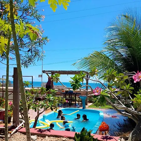 顧客のための無料駐車場とサンテラスを提供するChale Panulirusアパ-トはIcapuíに位置しています.